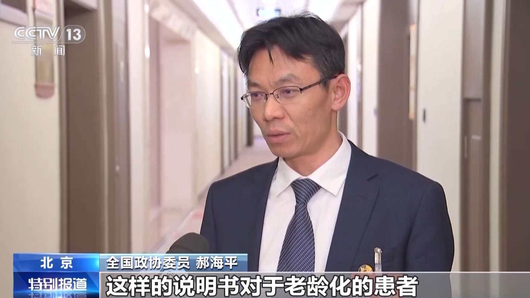 全国政协委员 郝海平:建议进行药品电子说明书的普及推广,除了看以外还可以朗读的,这样的说明书对于老龄化的患者来说是特别适用的。