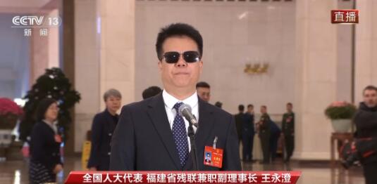 今天(3月8日)上午,十四届全国人大二次会议第二场“代表通道”在人民大会堂举行,全国人大代表、福建省残联兼职副理事长王永澄接受采访。