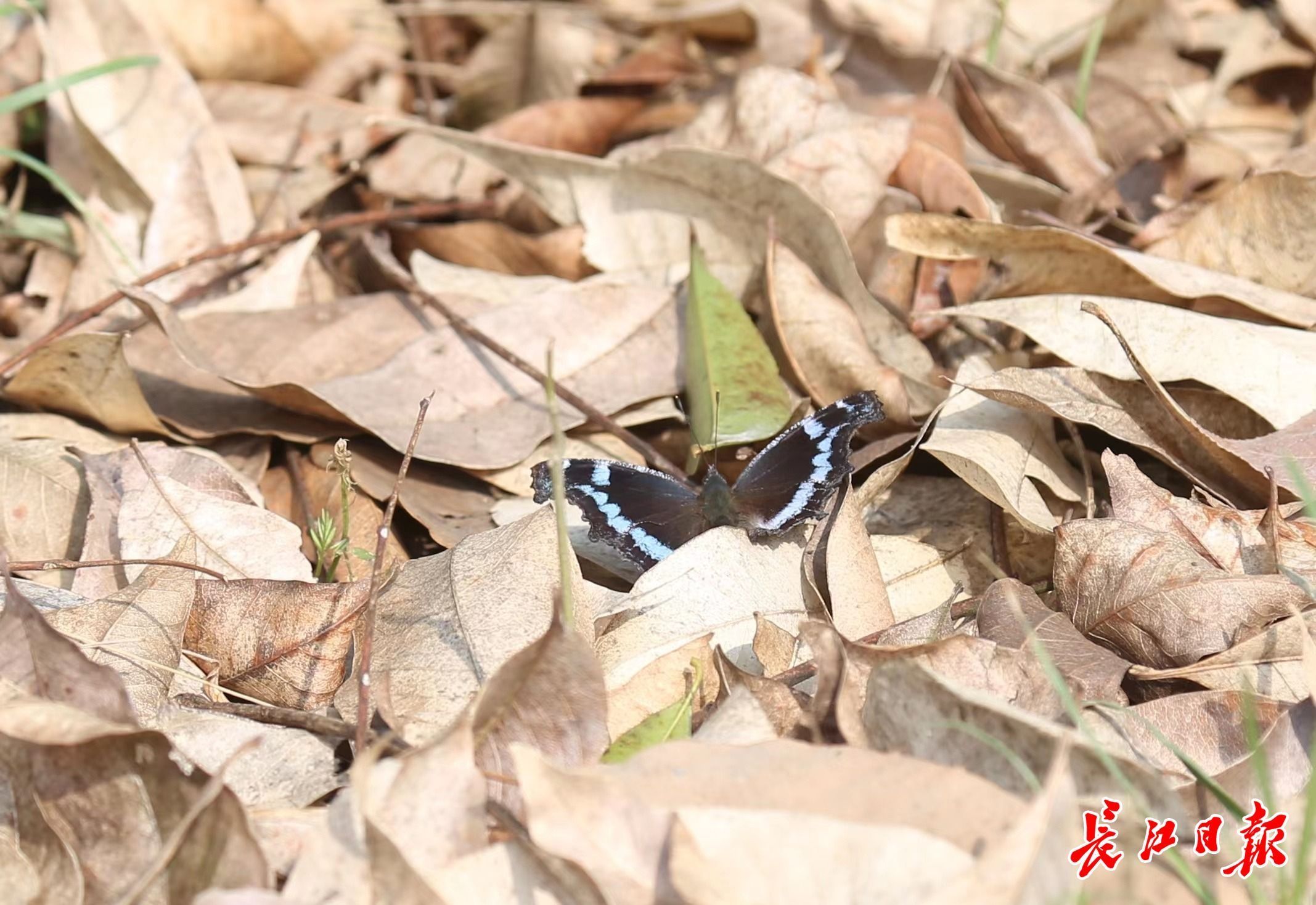 在寻访中,记者还看到了黄钩蛱蝶、菜粉蝶等蝶种。与往年同期相比,今年这个时候的越冬蝶品种较少。另外,因为冬眠的缘故,这些蝴蝶的翅膀偶有破损,但并不影响它们起舞访花。