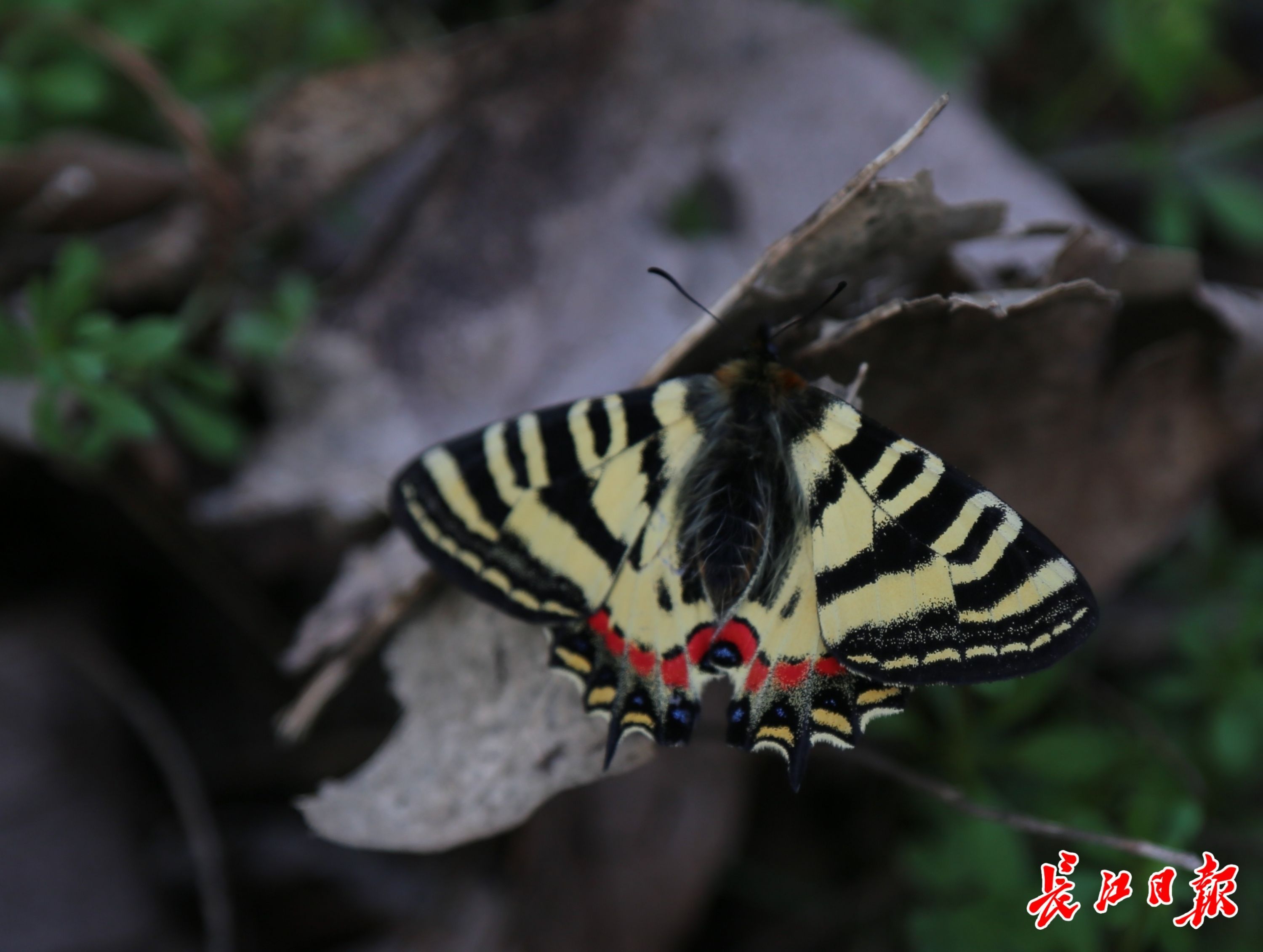 2023年4月,长江日报记者拍摄的栖息在林间的中华虎凤蝶。