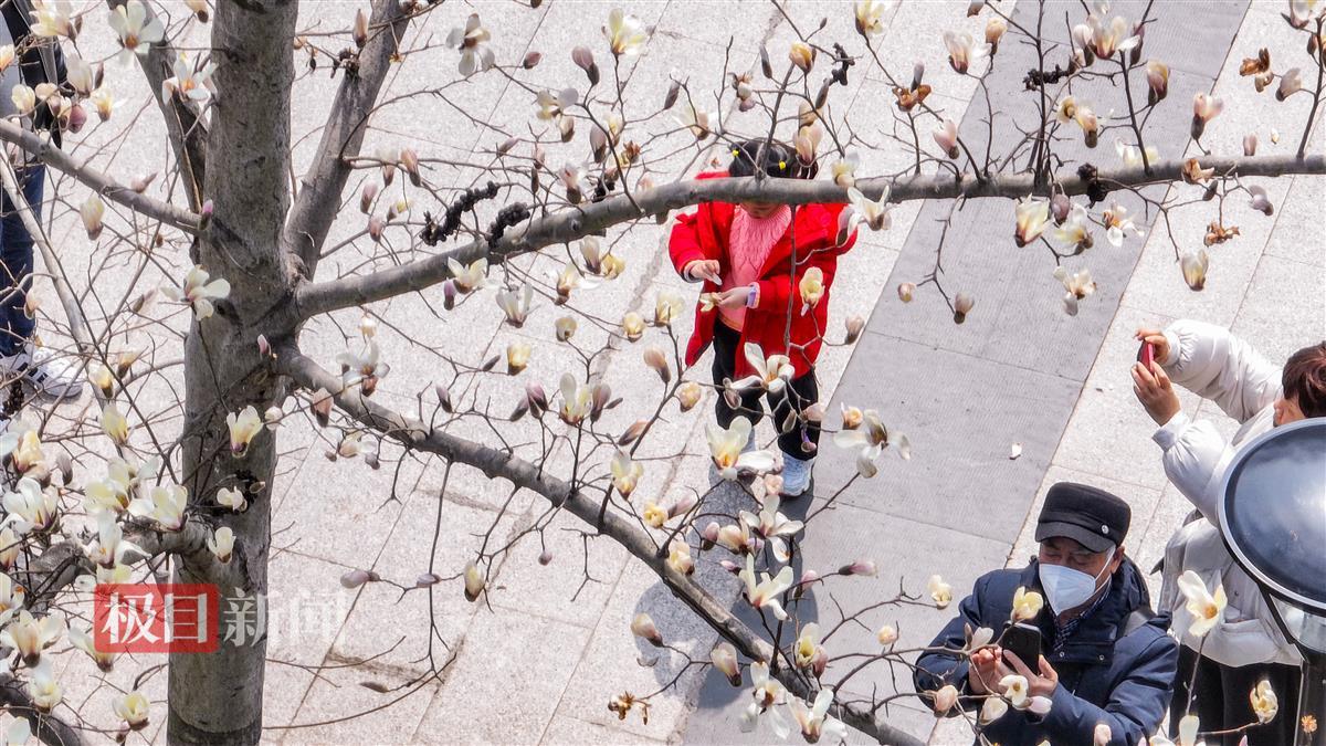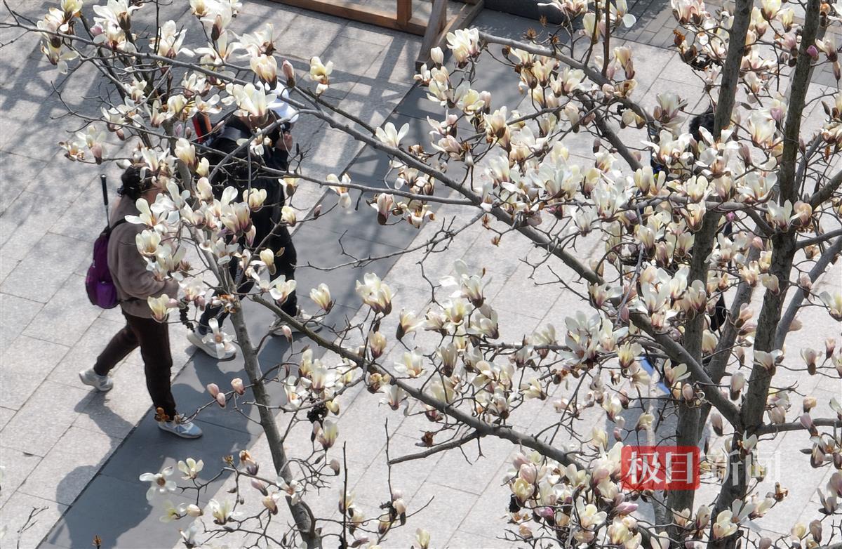 “去年二乔玉兰凋谢时,正是3月10日,紫色花瓣特别可爱,可如今白玉兰才刚刚绽放。”市民陈女士去年还发了朋友圈的。