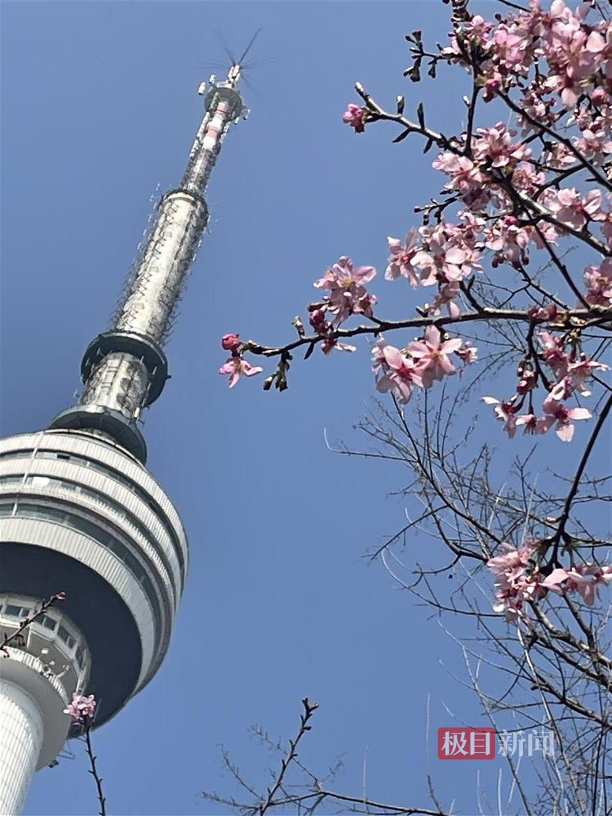 玉兰、山茶、海棠等晚点上线,而飞寒樱紧赶慢赶地也晚了一周开花。记者在龟山公园看见,就在龟山电视塔下,百余棵飞寒樱绽放粉色花儿,每朵花都较大,有5片花瓣,像翻飞的蝴蝶,引来游客观赏拍照,“今年晚点了一周。”龟山工作人员告诉记者。