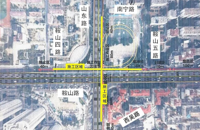 因山东路-鞍山路东北象限匝道施工需要,自2024年3月11日至2024年4月10日,占用山东路-鞍山路跨线桥桥上(南宁路-西吴路)路段南向北方向外侧一车道和杭鞍高架路(鞍山五路-鞍山四路)路段东向西方向外侧一车道施工。施工期间,桥上保留双向五车道通行。途经车辆请提前规划路线,保持安全通过。