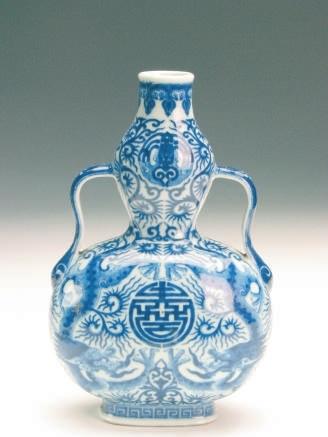 清乾隆青花螭龙纹如意双耳瓶