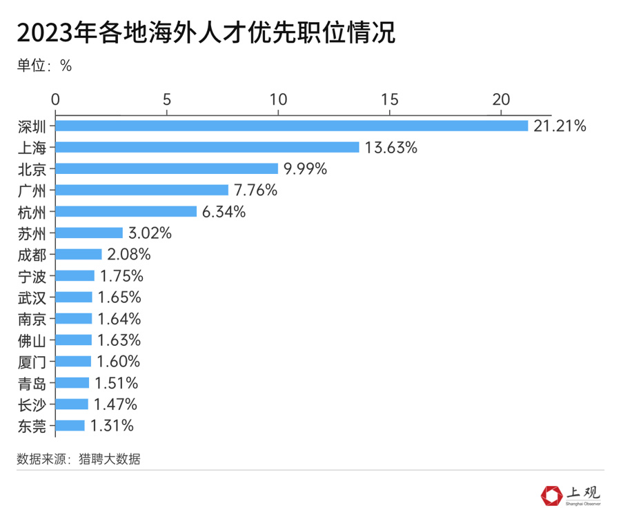 除了一线城市,佛山、宁波、苏州这些经济发达的二线城市对海外人才的需求也在迅速增长。