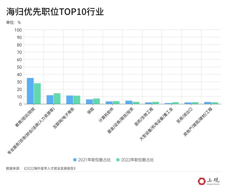 像薪资优厚的基金、证券、期货等金融业岗位,或是计算机、芯片等高科技岗位,对海归的优先度都不太明显。