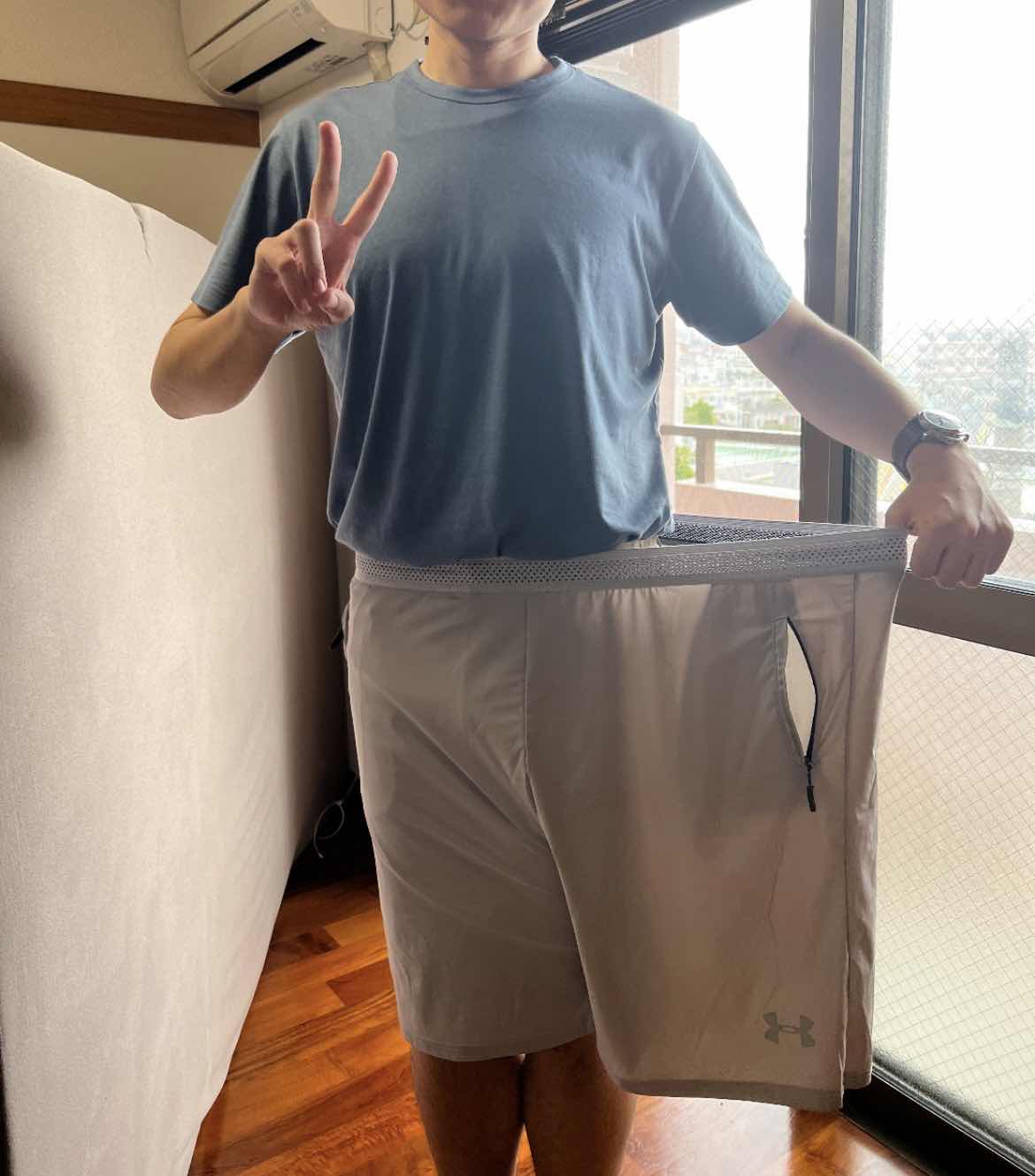 瘦下来之后的鞠隆,有时候会把自己肥胖时期的旧衣服从衣橱里拿出来,钻进短裤的一只裤腿里,另一只裤腿张开,还比了个耶,看起来像是在说:“看吧,我做到了。”