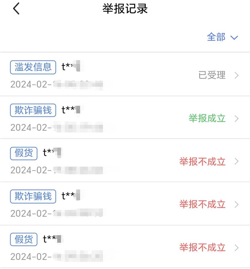 记者实测后的举报记录 (APP截图)