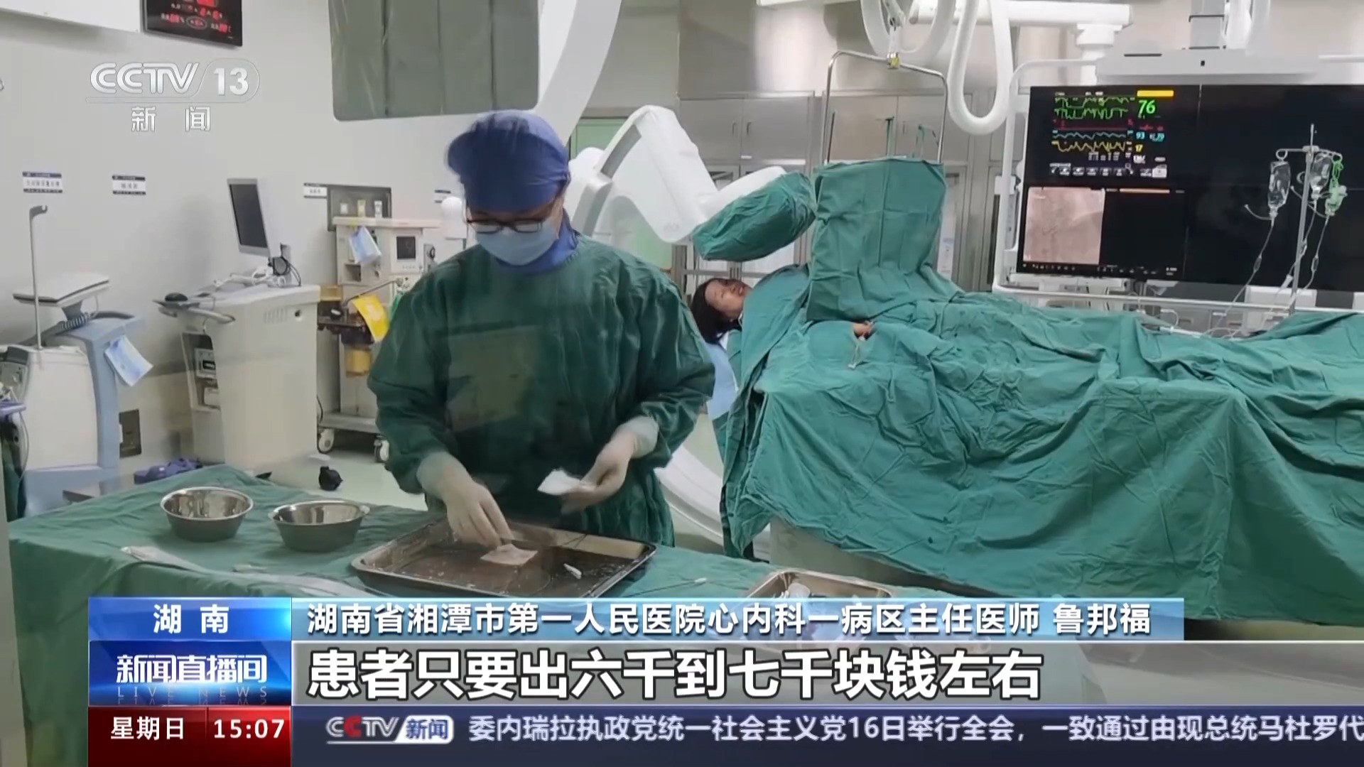 湖南省湘潭市第一人民医院心内科一病区主任医师 鲁邦福:在集采之前,做一个支架植入手术,一个病人平均费用至少要三万到四万之间,现在总费用包括造影一起,只花一万三千多,医保报销之后,患者只要出六千到七千块钱左右。