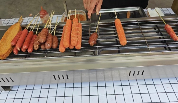 某集市内的烤肠摊位