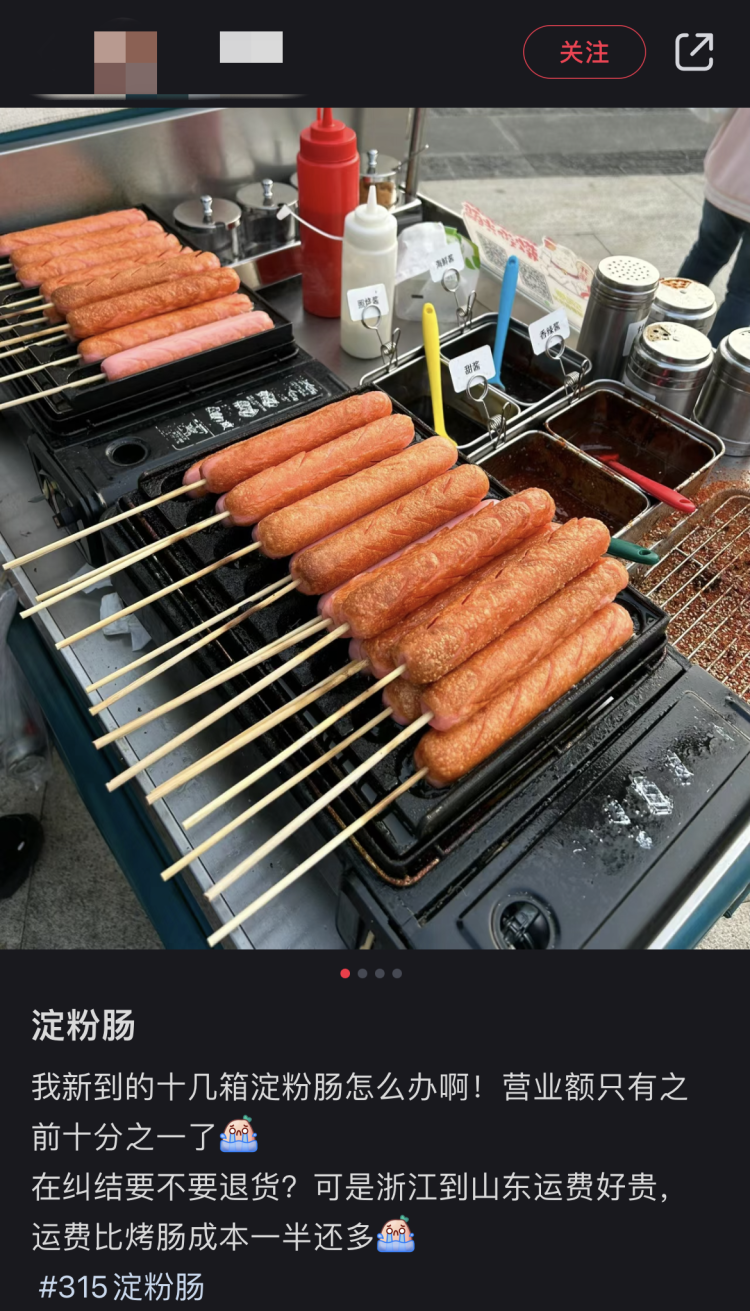 网友表示,自己烤肠销售额暴跌