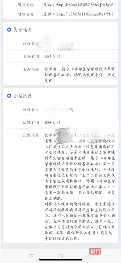 针对此问题,有经营商投诉至当地12315平台。极目新闻记者从当地市场监管部门反馈内容中看到,经审查,调解过程中发现投诉人购买该公司产品用于经营使用而非用于生活消费,不属于消费者权益保护法所界定的生活消费范畴,属于《市场监督管理投诉举报处理暂行办法》第十五条第三项规定的不予受理情形。对投诉人提供的材料核查,暂未发现有证据证明被投诉方存在虚假宣传违法行为。投诉人反映的问题属于商事合同纠纷,应双方自行协商解决,协商不成,应依双方签订的合同或协议(包括口头协议、QQ、微信聊天记录等)约定的争议处理方式处理。