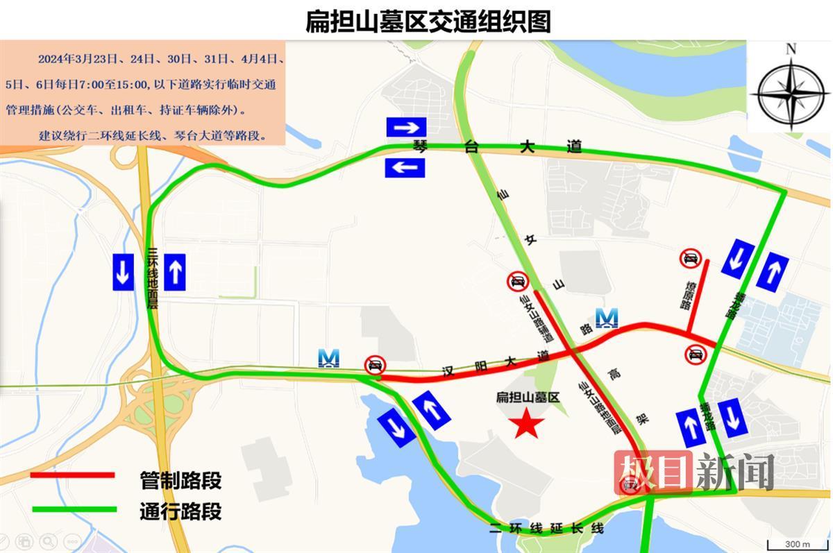 绕行建议:需通行扁担山墓区管制路段的车辆,可绕行二环线延长线、琴台大道等路段。