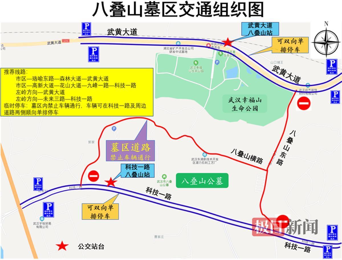 2024年3月23日、24日、30日、31日,4月4日、5日、6日,每日7:00至15:00禁止机动车进入八叠山公墓墓区,车辆一律在森林大道(武黄大道)、科技一路及周边道两侧临时单排停放。