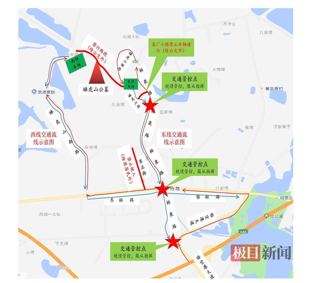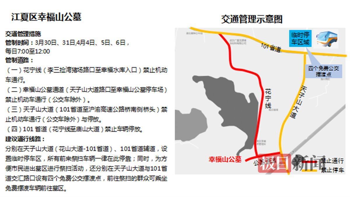 附近的白汊湖陵园、顺港陵园、荷包湖公墓、辛安渡陵园、南山陵园等区域,在2024年4月4日至4月6日每日7:00—12:00期间,部分道路实行以下临时交通管理措施:
