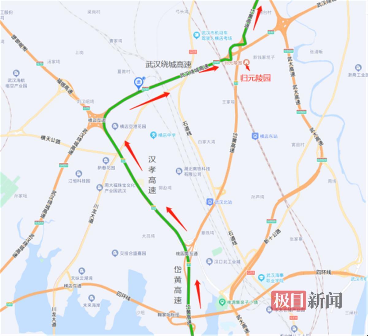 归元陵园:因祭扫人流、车流较大,预计岱黄高速归元陵园路段通行缓慢,建议市民乘坐公共交通出行。祭扫高峰期,经由岱黄高速到前川地区的驾驶员可选择绕行线路以避开归元陵园通行缓慢路段(桃园集互通处绕行汉孝高速→横店互通→武汉绕城高速→黄陂互通→岱黄高速);未绕行的车辆可能会受到排队进入陵园车辆影响,请提前沿最左侧车道通行,谨慎驾驶、注意安全。