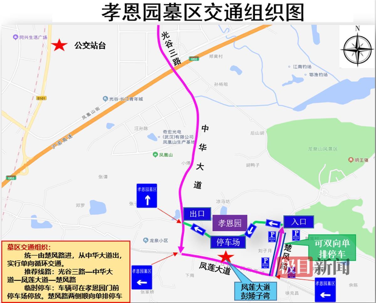 龙泉孝恩园墓区:2024年3月23日、24日、30日、31日,4月4日、5日、6日每日7:00至15:00,龙泉孝恩园门前X004(楚风路至中华大道)实行由东向西单向通行。
