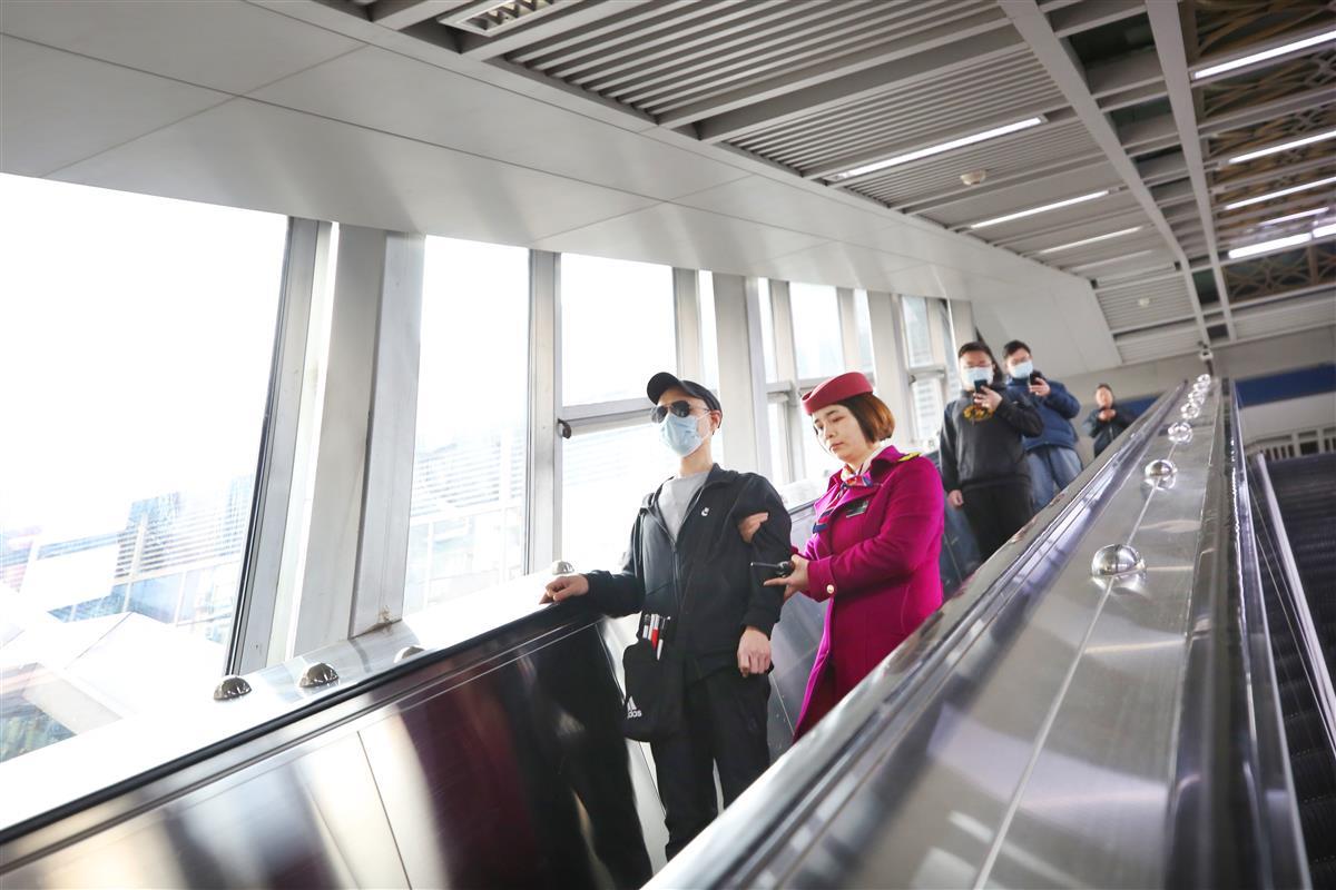 1号线大智路站值班站长吴青扶陈德顺乘坐电梯
