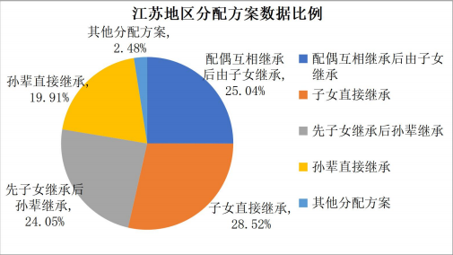 从财产分配方案上看,子女为主要继承人,其中,“子女直接继承”占比28.52%,“配偶互相继承后由子女继承”占比25.04%,“先子女继承后孙辈继承”占比24.05%。