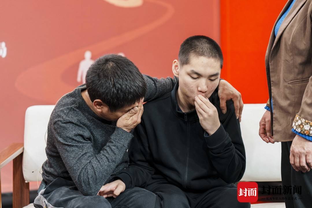 13年后重逢,梁安全还像孩子小时候一样,喂他糖吃,安抚孩子敏感的情绪。梁安全的大儿子患有脑瘫生活不能自理,小女儿也马上就要高考,一家人生活非常困难,参与寻亲的北京缘梦公益基金会也在活动中通过“离散家庭团圆计划”公益项目为他们一家捐赠1万元善款。