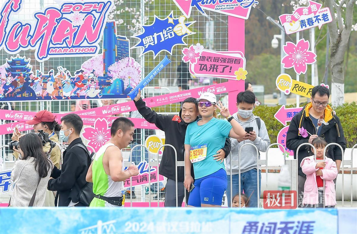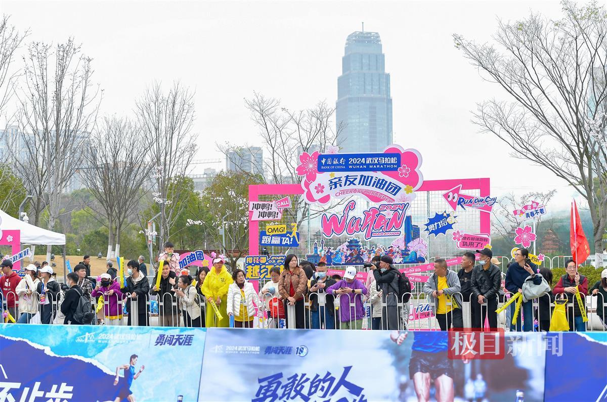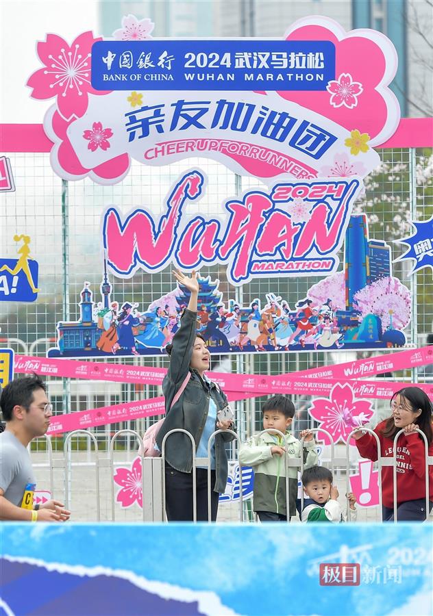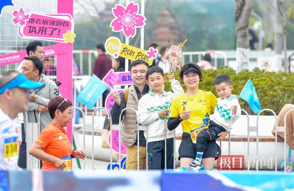 42.195公里,是2024武汉马拉松全程的终点。当你跑到37.5公里时,肯定会感到脚步沉重,在最后冲刺前,如果听到一阵又一阵的加油声,而且这一声声加油来自你的爱人、你的孩子、你的兄弟、你的同事,你肯定会瞬间“回血”,精神抖擞……
