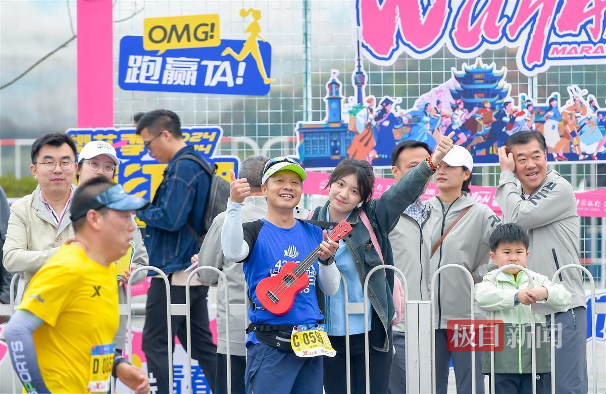 “我见证了父亲的第90场全马!”在看到父亲邵振刚边弹着尤克里里,边跑过来时,在武汉读书的小邵姑娘在赛道边使劲地挥动着手臂,父女俩以这样特别的方式“相见”,这是第一次。