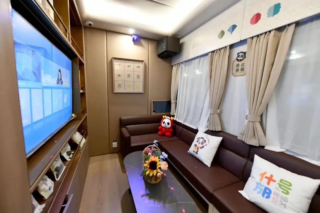 车身内外装饰以及各项细节全方位展示什邡地域文化特色,可提供休闲度假、美食观光、研学旅行等多种主题出行服务,满足不同年龄段旅客群体需求。