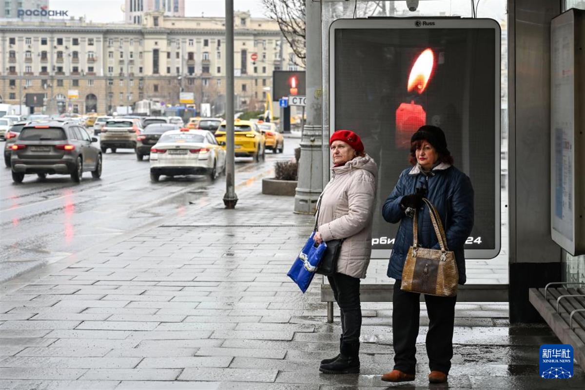 莫斯科街头的广告牌播放蜡烛图案(图据新华社)