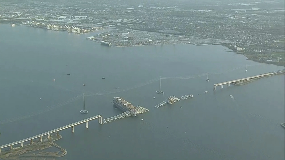 位于美国东部马里兰州巴尔的摩的这座大桥26日凌晨遭一艘集装箱船撞击后坍塌,恐有20人落水,搜救正在进行中。