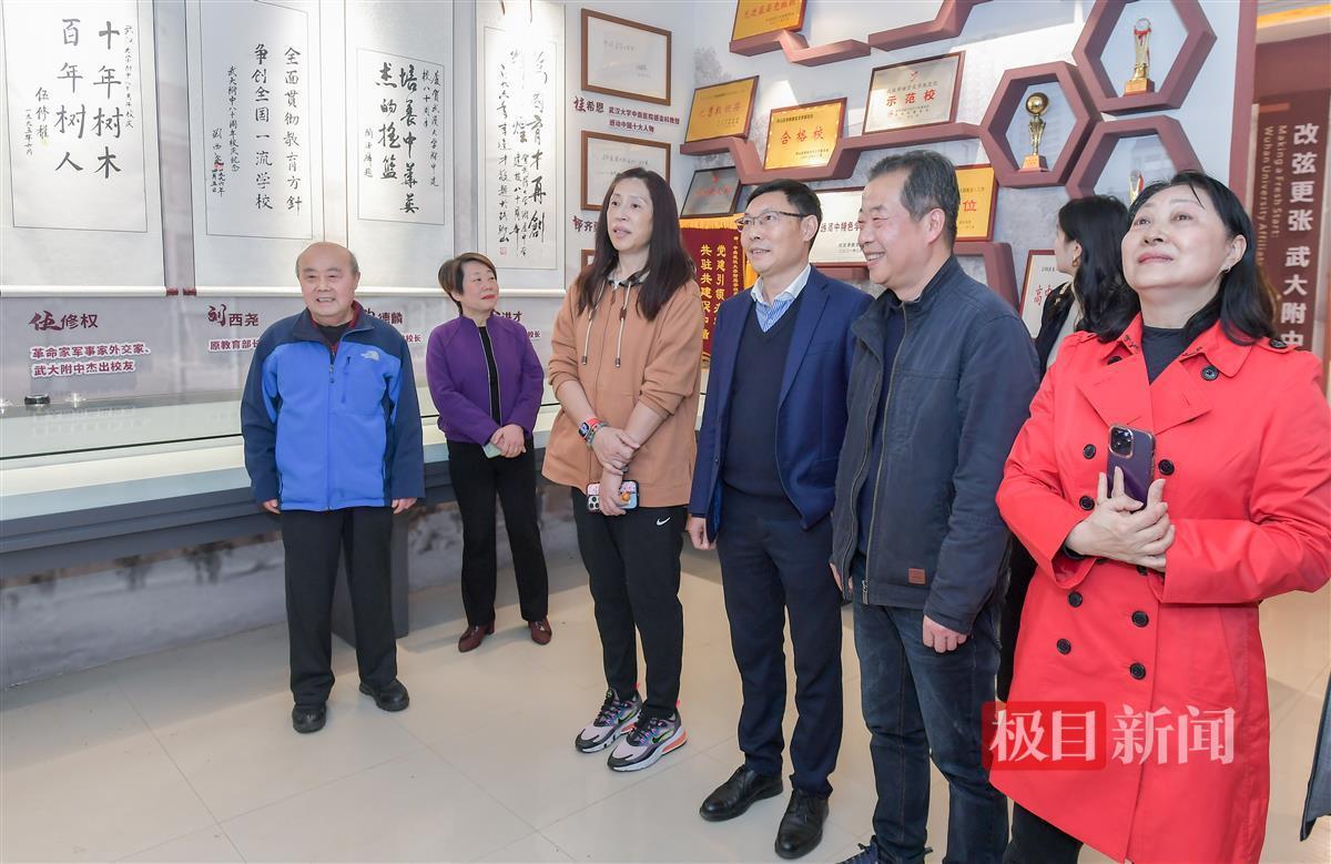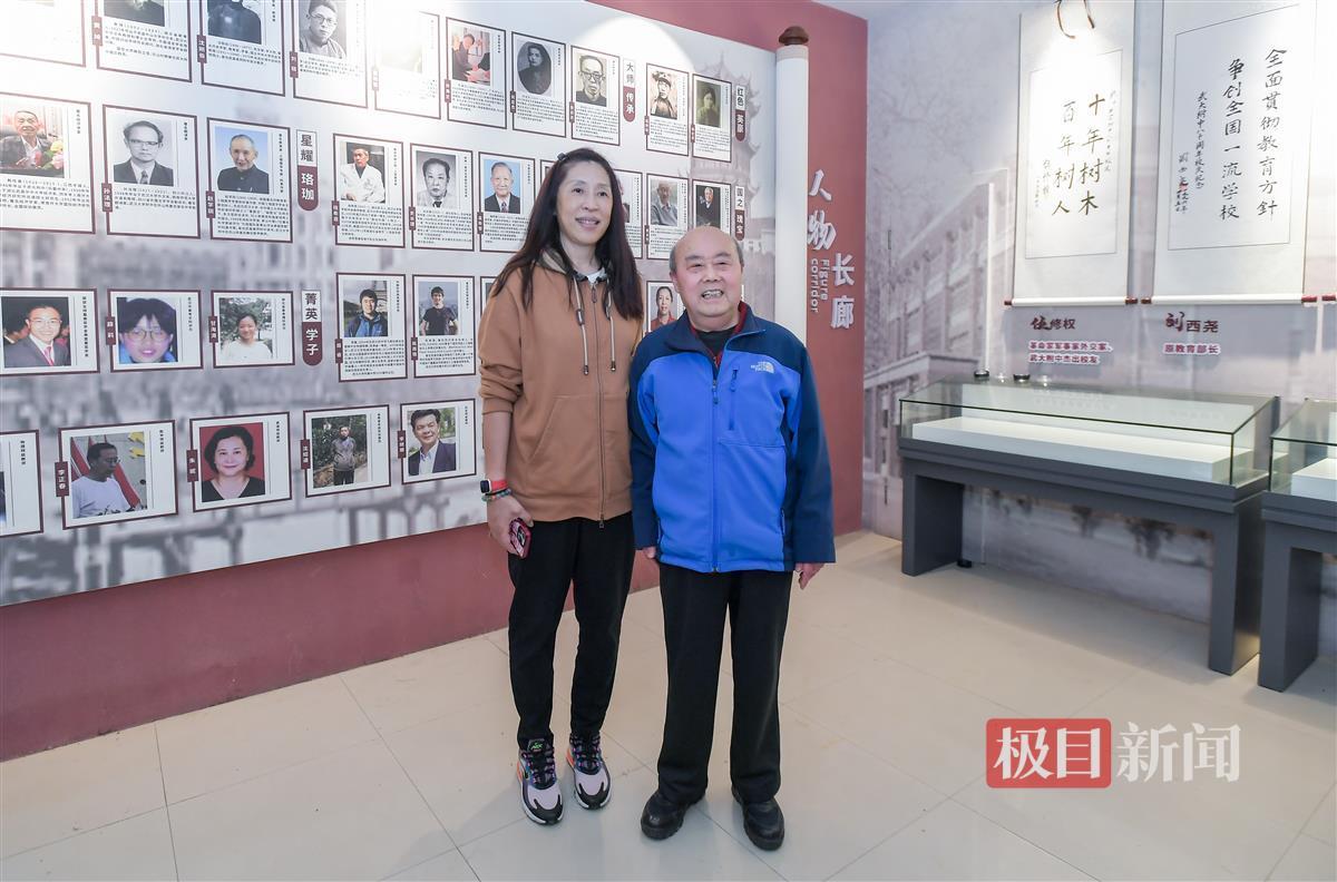 在该校校史馆,郑薇和该校老师们一同回顾了学校的发展历程。在优秀校友墙上,郑薇找到了自己的介绍,并和武大附中时任学校教务主任郭老师拍下一张时隔40余年的合影。“武大附中的杰出校友太多了,大多都是学术界的人才,很高兴我能填补学校在体育界的优秀校友空白。”郑薇说。