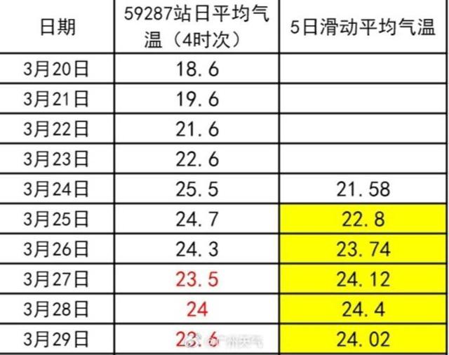 根据广州市气象部门监测,广州国家基本气象站在2024年3月23日录得日平均气温22.6℃,此后的3月24日至29日该站日平均气温均在22℃以上。