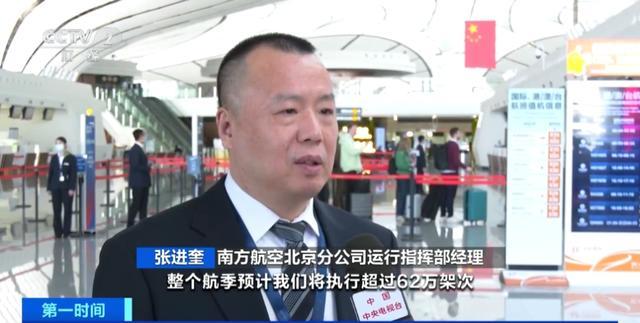 南方航空北京分公司运行指挥部经理张进奎:整个航季预计我们将执行超过62万架次。在北京地区夏秋航季每天达到进出港350架次,环比冬春季增加了96个班次;国际航班大概每天46个架次,环比冬春季增加了19个航班。