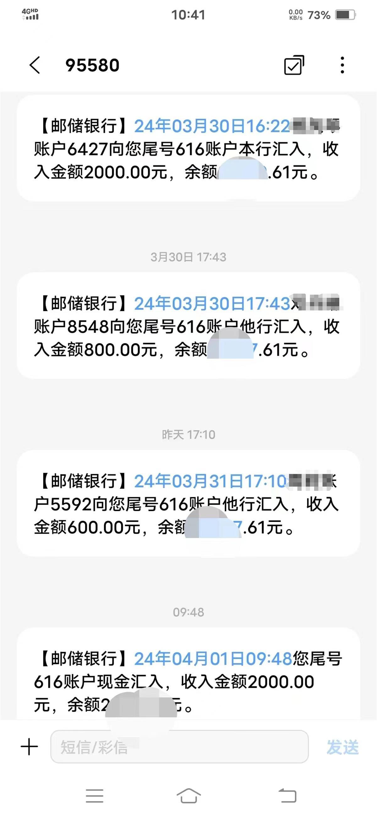 郑先生提供的部分捐款到账截图