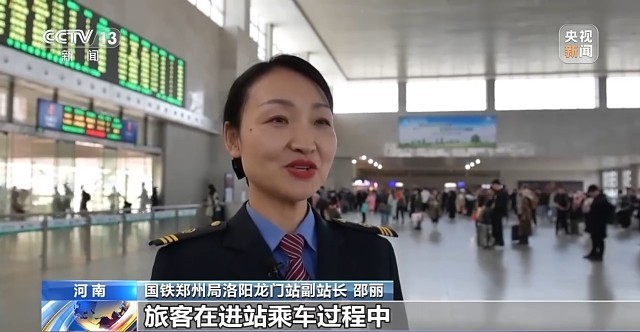 国铁郑州局洛阳龙门站副站长邵丽:旅客在进站乘车过程中遇到任何问题,都可以随时向服务台或身边的铁路工作人员寻求帮助。