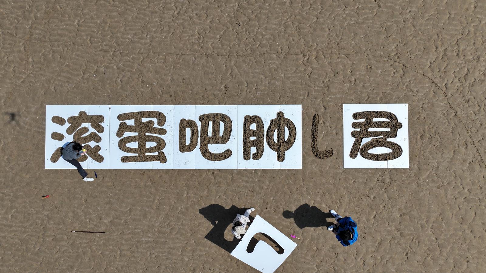 为了尽快完成这项工作,不给嘉嘉留下遗憾,景区第二天便着手开始拍摄工作。而当天恰逢清明节小长假的最后一天。由于天气晴好,景区当天游人如织,不少人还目睹了这一场景。上午9时许,工作人员将提前准备好的字根据心愿留言进行场景还原,为了拍摄效果还特别制作了1.5米的字体。布置好后,大家便开始等待大海,等待着涨潮的时刻。“很多游客好奇过来看,不少人会问为啥要保护这几个字,我们不厌其烦地将嘉嘉的故事告诉大家。”王琳说,从上午9点,到中午12时许涨潮来临最终拍摄成功,工作人员在沙滩上顶着烈日、选择轮流换岗吃饭也牢牢守好现场完成了嘉嘉的心愿。当高清航拍下了大海冲走心愿的画面时,现场的同期声里有人欢呼着,也有人激动得哭了。