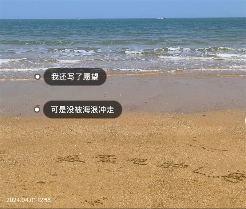 不过,由于当时正是大海退潮。嘉嘉的愿望便被留在了沙滩上,留在了美丽的连岛,成了一个小小的遗憾。