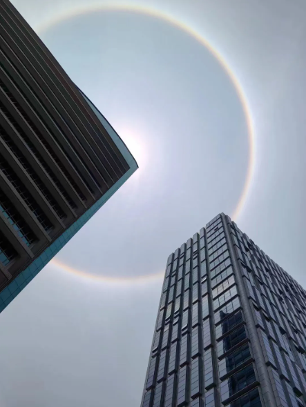 晶报消息,今天中午,深圳上空惊现美丽的天文景象,太阳旁边有一圈肉眼可见的光环,耀眼又漂亮,不少网友晒出了美图。