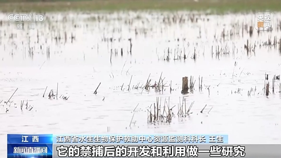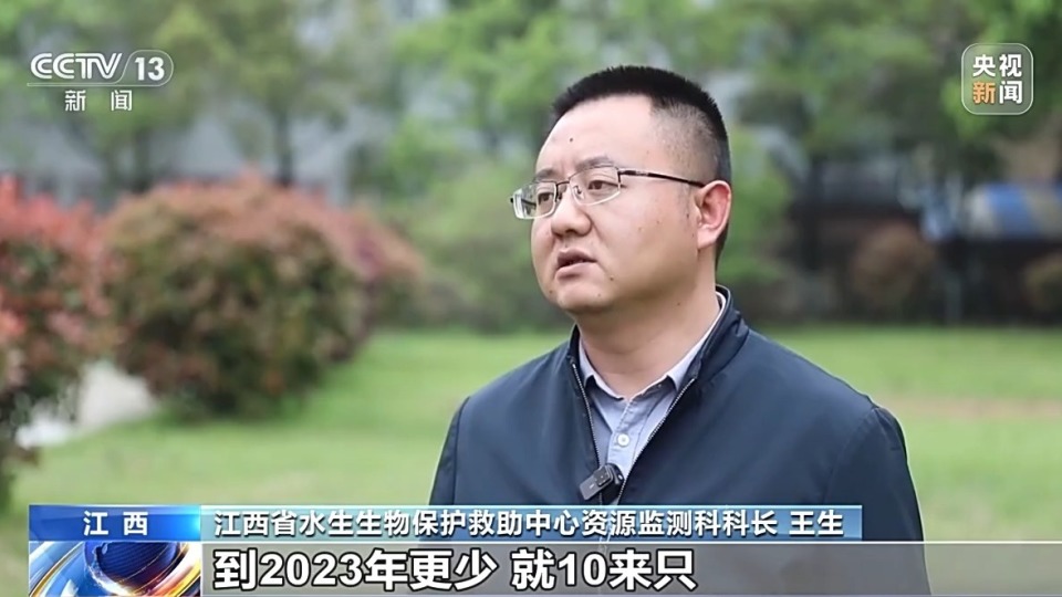 江西省水生生物保护救助中心资源监测科科长 王生:2021年的时候可能就监测到百来只,2022年的时候30来只,到2023年更少,就10来只。