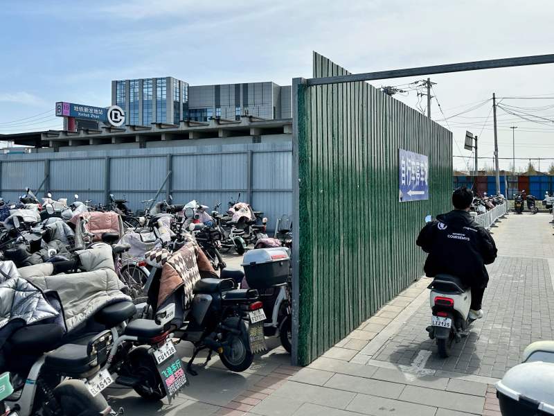 比如新发地站,该站位于新发地北桥东侧,京开路与南苑西路交叉路口处,是新发地地区重要的交通枢纽,人车流量较大。不少周边居民都会采用非机动车代步到此换乘地铁的方式通勤出行,但原先设置的非机动车停车场位置紧张,难以满足需求。