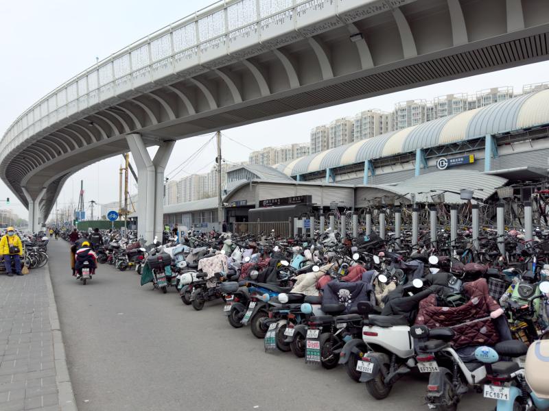 地铁19号线是近年来北京新开通的一条南北向快线,为大兴、丰台等地区居民通勤提供了便利,但是在一些地铁站周边,乘客停放的自行车、电动车数量庞大且秩序混乱,给市民出行带来了困扰。