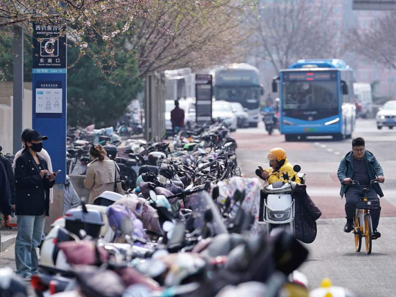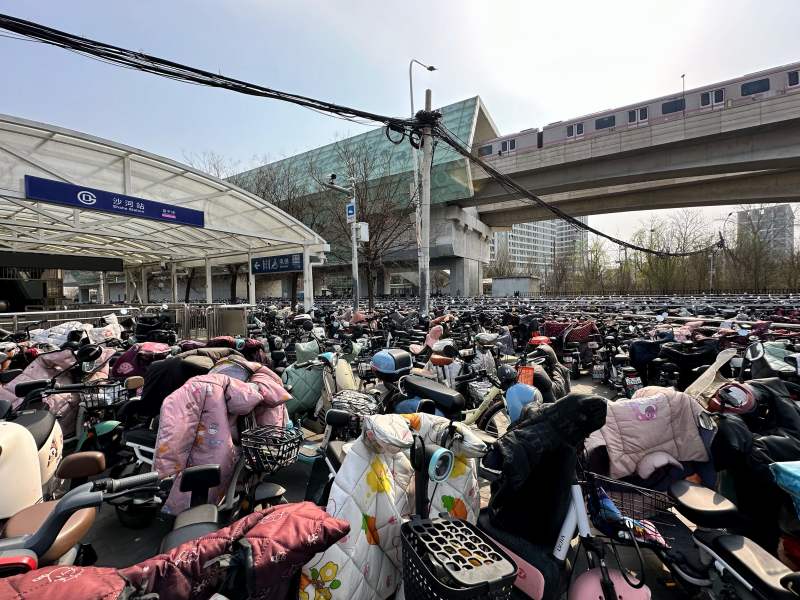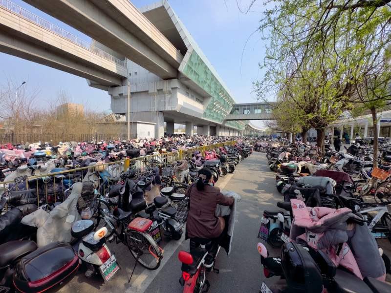 一些设有固定停车设施的地铁站,也在遭受着停车之困。地铁昌平线沙河站曾专门清理闲置区域,增加停车设施供非机动车停放。但如今,非机动车出行增加,尤其是电动自行车出行量明显增加,上班族来晚了,车辆都无处可停。