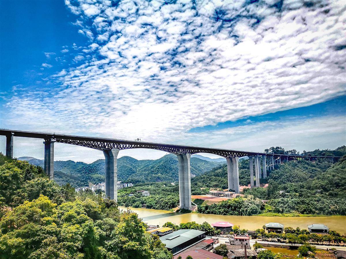 沙溪大桥是莆炎高速三明段的重要组成部分,位于福建省三明市三元区莘口镇,全长1408米,宽33.5米,双向6车道,设计时速100公里,主桥上部结构共4跨,采用主跨176米的钢桁组合连续刚构,为目前世界上同类型桥梁最大跨径,丰富了山区大跨径桥梁桥型方案。