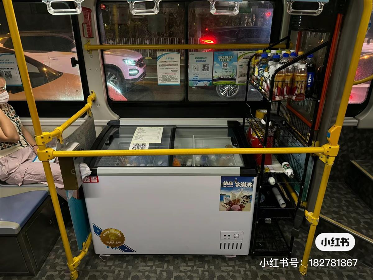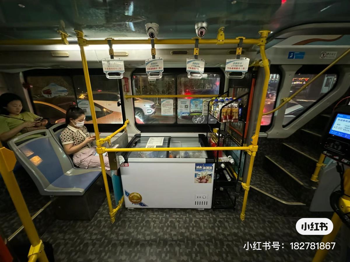 4月4日,有深圳网友发帖子称,在乘坐M191路公交时意外发现车厢一层乘客座椅与楼梯之间的空间加装了一台冰柜,里面装了不少冷饮,可以通过冰柜拉门上的二维码自助购买付款。拉门上张贴的价目表显示,冰柜内有矿泉水、苏打水等饮料,价格从2元至6元不等;冰柜边还有一个小货架,上面摆有常温饮料。