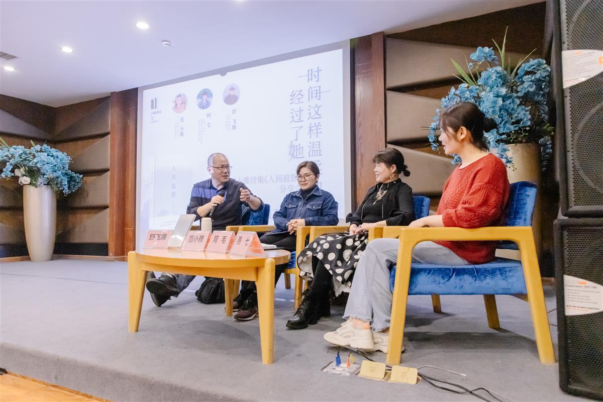分享会由华中师范大学文学院教师舒飞廉主持,武汉市作协副主席阿毛、大悟诗人燕七与范小雅一起展开对谈,交流诗歌魅力、分享创作心得。