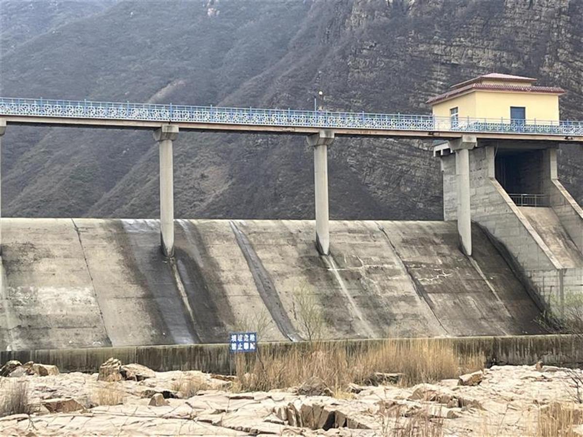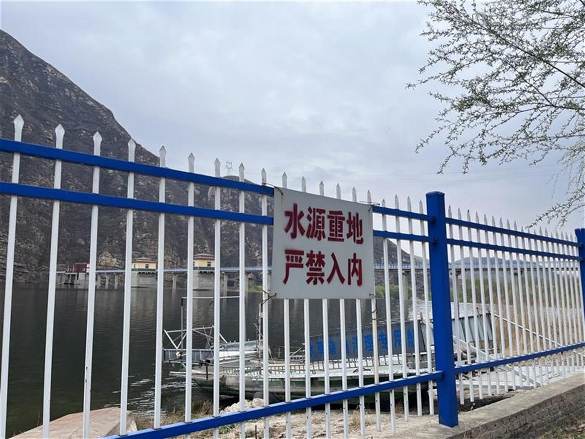 记者在堤坝处看到,堤坝上水域两侧有一米多高的护栏,坝体下方是一处开阔区域,水位较低,两侧的河岸裸露着大块石头。坝体不远处还立着多块警示牌,上面写着,“水源重地,请勿靠近” “坝坡危险,禁止攀爬”。