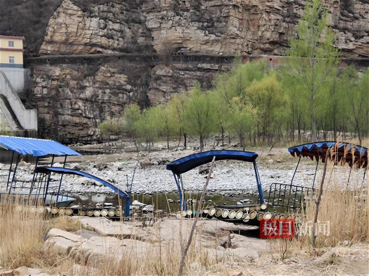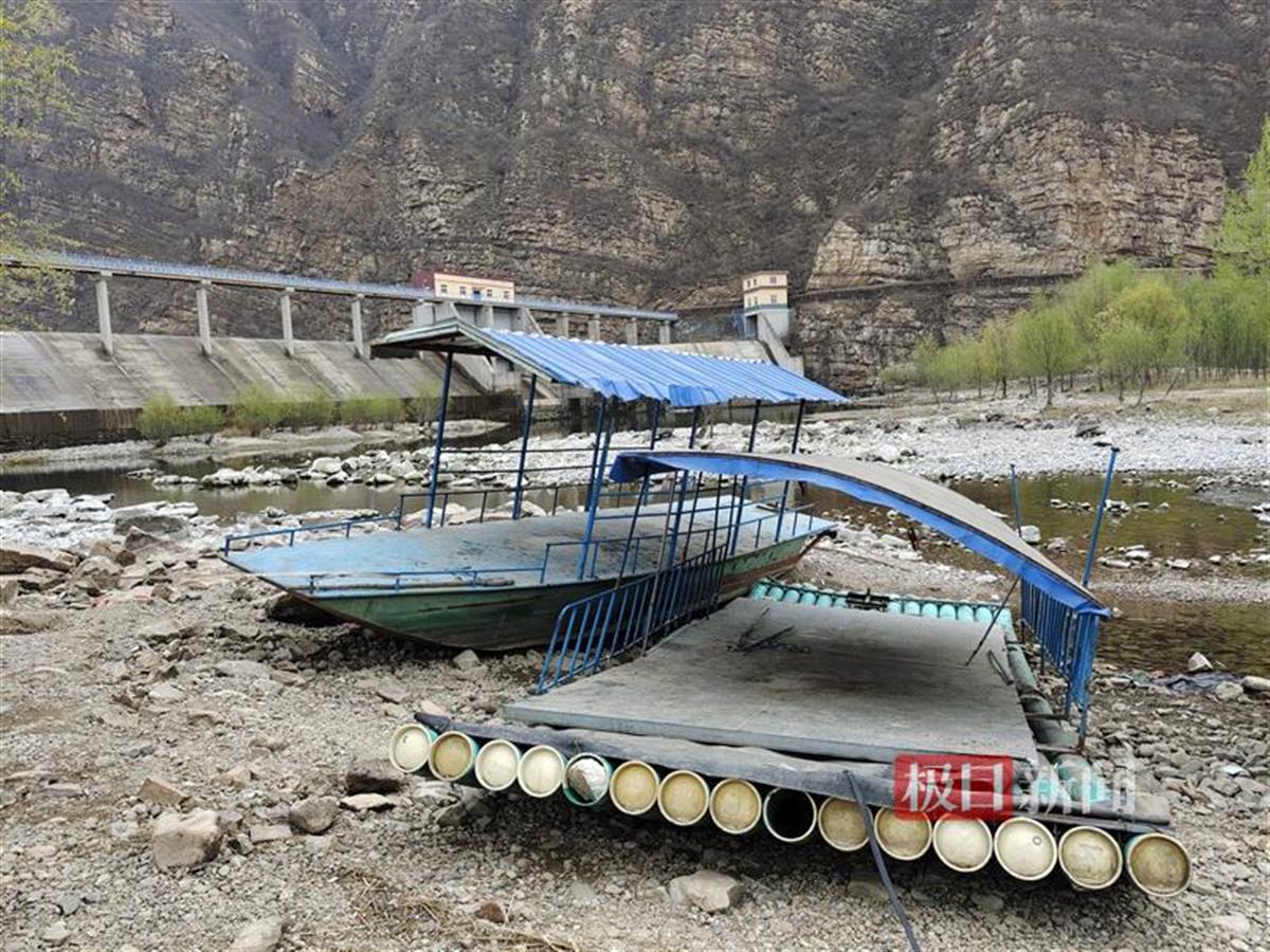 极目新闻记者注意到,从拦截坝向下游出发,沿路可见20多条游船停靠在岸边。游船主要有两种,一种是仿照竹筏造型的游船,船上有简单的船篷;另一种是铁皮船。