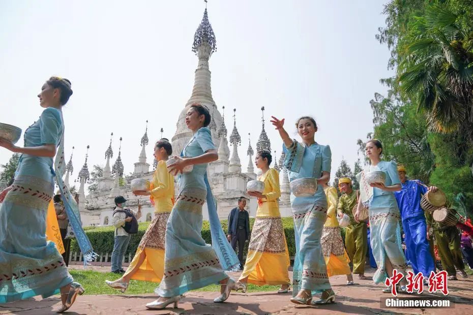 4月12日,一年一度的泼水节如约而至,云南省德宏傣族景颇族自治州芒市的民众沉浸在一片欢腾与祝福的海洋之中,辞旧迎新、祈福消灾,共庆傣历新年。图片来源:中新视频截图
