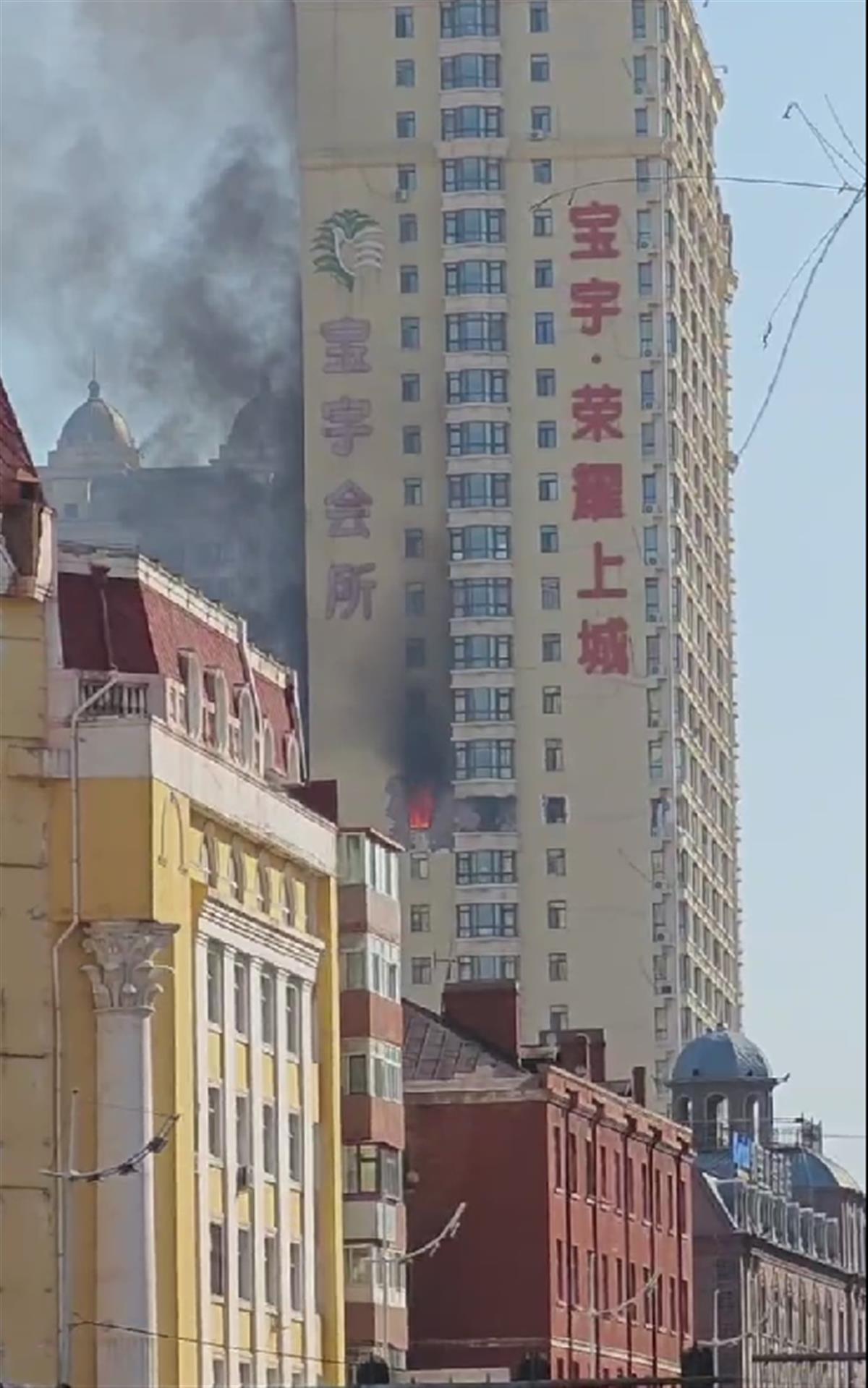 4月17日,多位网友发布的视频显示,一栋高层建筑的一户住宅正在起火燃烧,并冒出浓烟。
