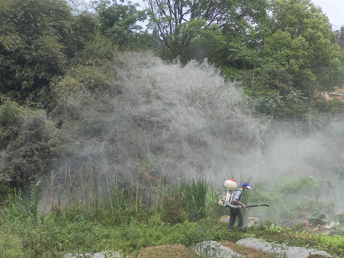 林贵森称,尺蠖并非外来物种,在当地较为常见,但编织巨网确实罕见,事发地附近有几棵枫香树,是虫害出现的原因。不过,这种虫害的防治比较容易,目前他们已喷洒1000克苏云金芽孢杆菌进行生物防治。