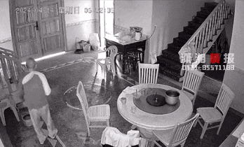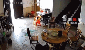 事后,肖女士查看监控显示,4月14日上午6时50分左右,肖女士的公公独自起床后慢慢走到门边,将门打开。